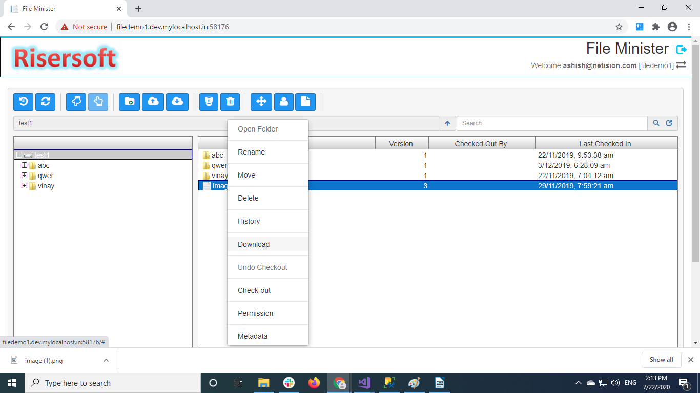 You can select the any file and click on download icon or right click on selected file and download the file.