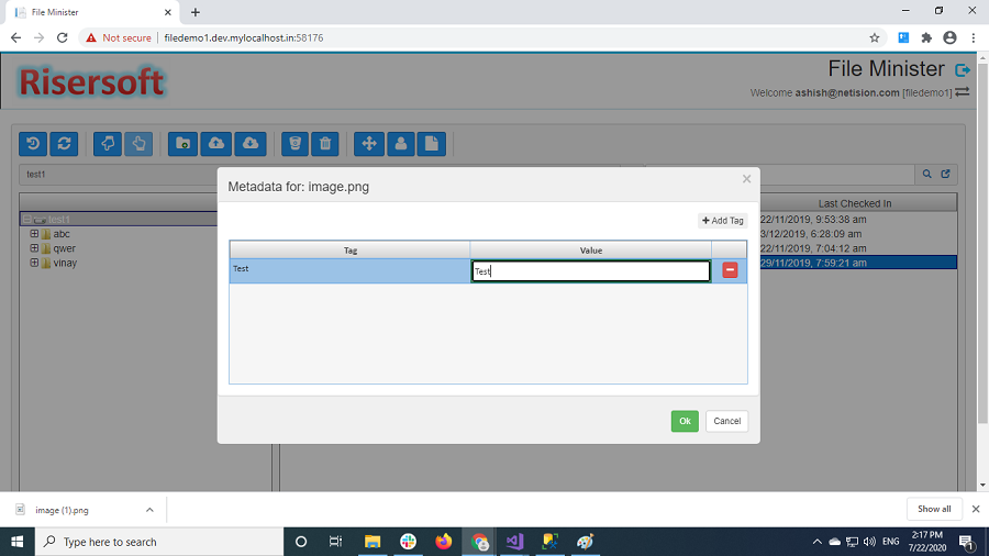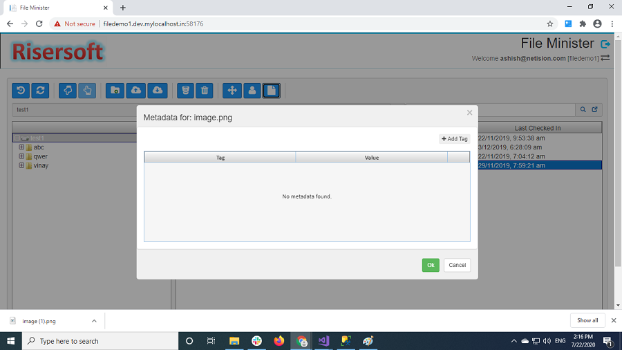 Click on the Add Tag icon to add a row in given grid and click on double click on added row then you can enter the tag and value then click on OK button your tag is saved.