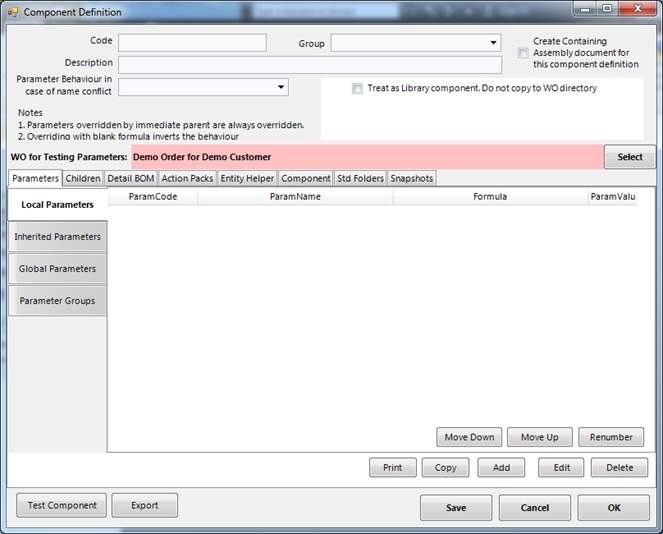 All new FormulaCAD components are created as Inventor Assemblies. If an Inventor file has been called, it is imported as it is into the main assembly after copying to work order folder. You may however choose to create a new containing assembly and then insert the assembly as a child to this containing assembly. If this is the case select “Create containing assembly for this component definition”. Please note that if component file linked is a part file and children have been defined, then this option is automatically checked.