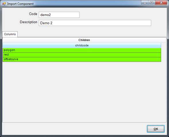 Other important thing is that the children are mapped using codes. All children which could be mapped are shown with green background and which could not be mapped will be shown with a red background. FormulaCAD will allow you to import even if all mappings are not available. In this case an entry will be added to the children list of component and all parameter overrides will also be added. You can later edit the child link and select appropriate child component.