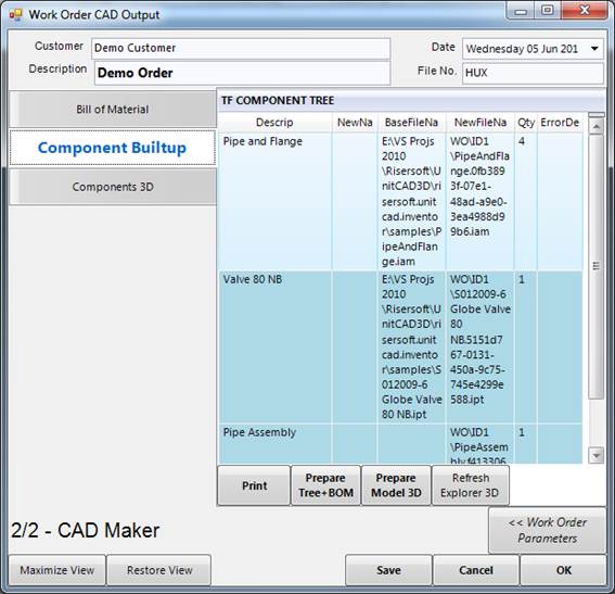 | Prepare Tree + BOM | Traverses the hierarchy of the components to make a linear list. Prepares BOM in this process. Required before Prepare Model 3D |