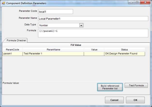 Formula – This is used to define the local parameter. It can be a simple value like “1” or a formula which references global parameters or other local parameters.