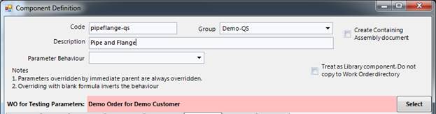 Select a new file/parent component definition and make entries as below.