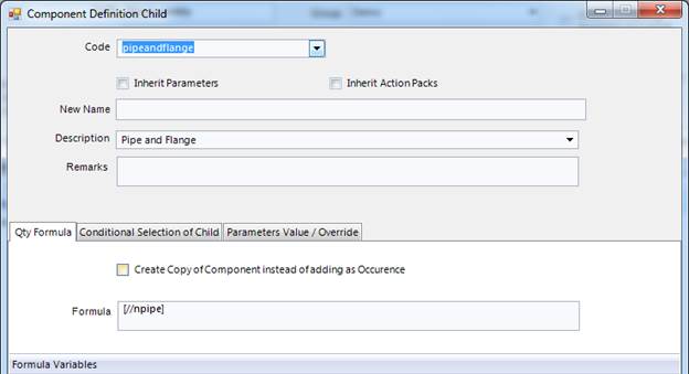 | Npipe | This is the parameter given in the quantity field of the PipeandFlange child. | We can see that the formula ensures that individual pipe cannot be more than 500 long |