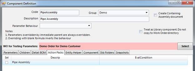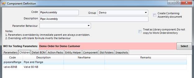Notice that quantity has been given a formula [//npipe]. PipeAssembly component definition needs to make sure that a parameter with the name npipe exists and is calculated appropriately.