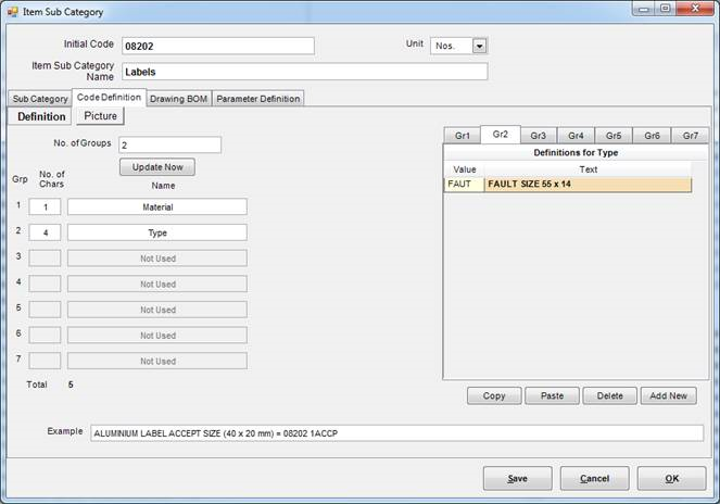 In this screen, we define what the rest of the digits in the item code will mean. We first define the no. of groups and then the name of each group and no. of characters in that group.