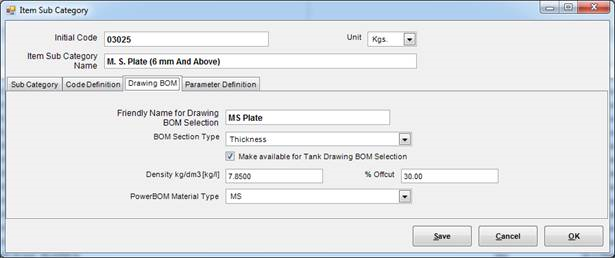| Make Available for Tank Drawing BOM selection | If this is unchecked, PowerBOM would not show the subcategory in document BOM |