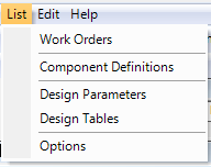 This menu is used to list various entities in PowerBOM. A context menu is available for each row in the list – this can be obtained by selecting a row and hitting the right mouse button.