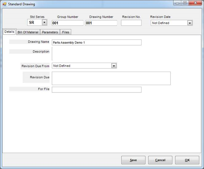 If a revision becomes due, we can enter the date from which revision is due and what revision the drawing has to undergo. These fields enable basic standard drawing management.