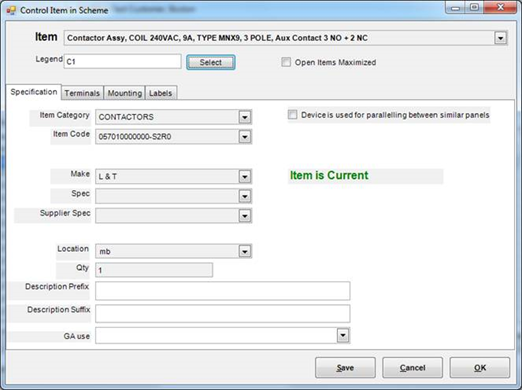 | Device is used for paralleling between similar panels | Sometimes, a device (frequently a terminal block) is used to parallel control schemes of sister units. In such cases, the information won’t be present in the wiring diagram. But if we check this box, VisualCircuit will generate a cable for this purpose. |