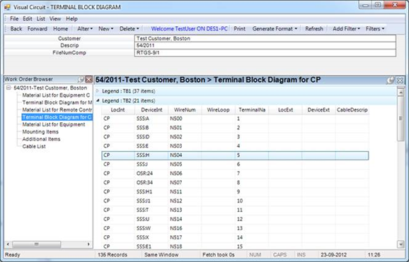 VisualCircuit output summary can be viewed and printed from this interface. Printable Drawings with title blocks are found inside the Work Order Schematic Screen.