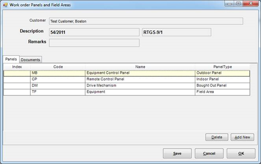 Before adding components to a work order, we need to define what panels are in there. This is done by going to the Panel and Document Configuration from the work order context menu.